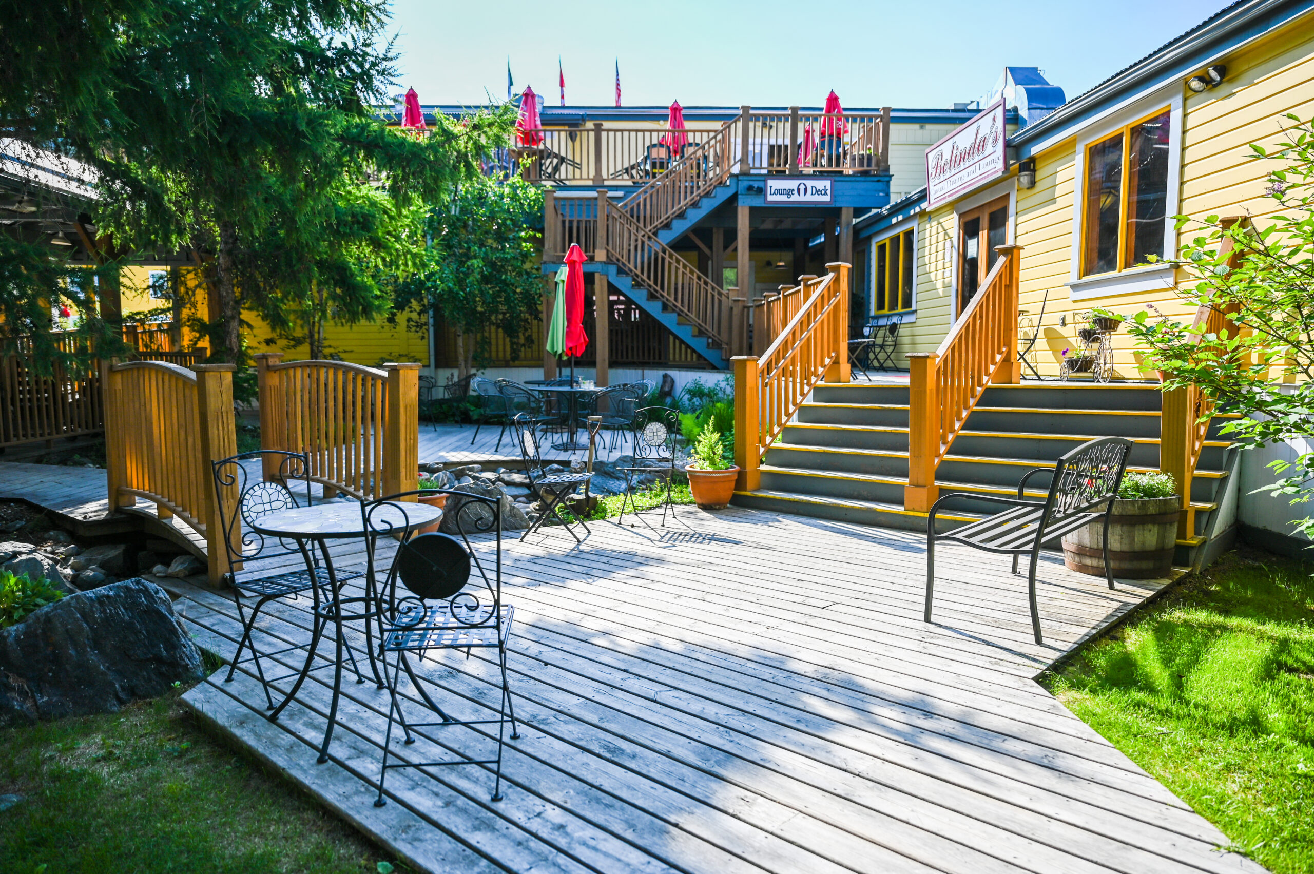 Relax with a cocktail in their comfortable wing-back chairs or take a seat at the old-fashioned bar. If you don’t want to miss a moment under the midnight sun, you can also enjoy your drink on the backside deck which overlooks the beautifully-landscaped courtyard and gardens.